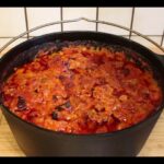1. Alle Zutaten (bis auf die Zwiebeln) klein schneiden und schichtweise in einen großen Bräter geben.